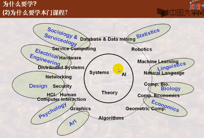 那么从早期我们只需要学几门核心的课程,如计算机系统、计算机理论,到人工智能这几门核心的课程学好了以后,我们基本上就能满足计算机的一种研究、开发、应用的需要