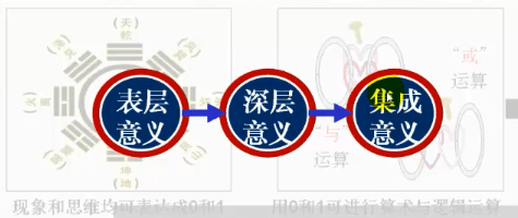 但是我们说这个易经并不是我们这门课要求的内容,实际上我们要通过这种易经,我们要能理解它这种深层的含义,这些深层含义的理解才是最关键的。比如说我们要通过这个易经,实际上反映的是一种符号化、抽象化、计算化,它反映的是符号、组合来表示一种计算,所以这种深层含义是很重要的。