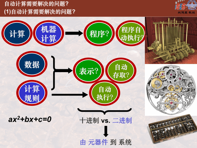 通过上面叙述,因此可以有:对于计算,我们要实现机器的自动计算就得要解决「程序」和「程序自动执行」的问题